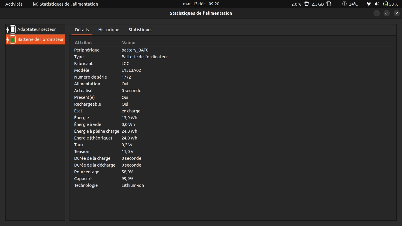 Sous Ubuntu c'est tout simplement statistique de l'alimentation.