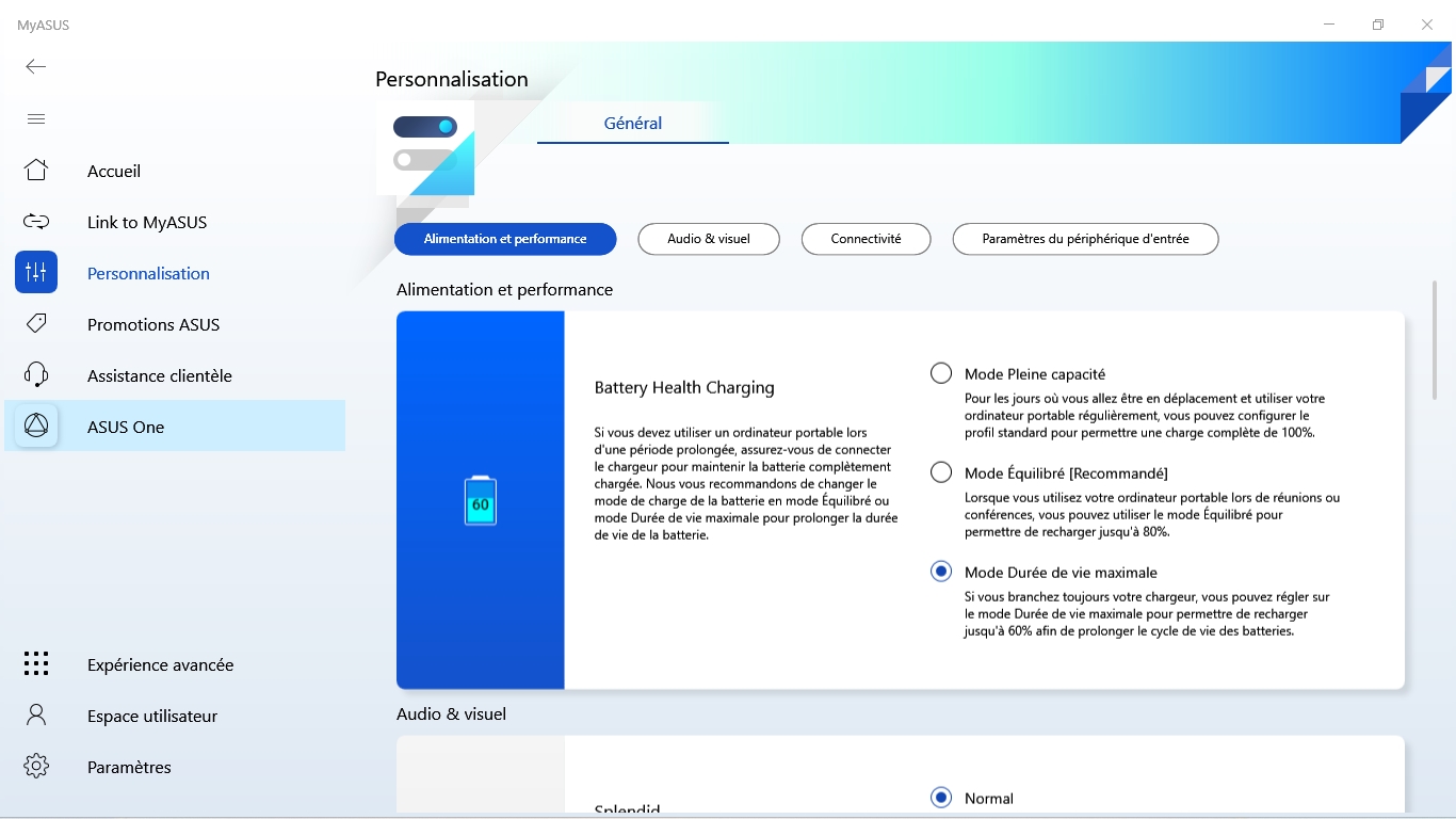 Et actuellement je suis avec mon Asus sous W11 ( je fais une formation à domicile Excel sur ce PC ) et c'est le logiciel Asus proprio.